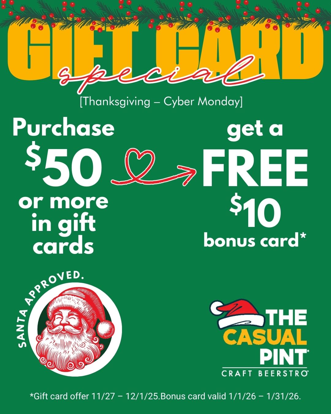Give the gift of The Casual Pint with our gift cards.